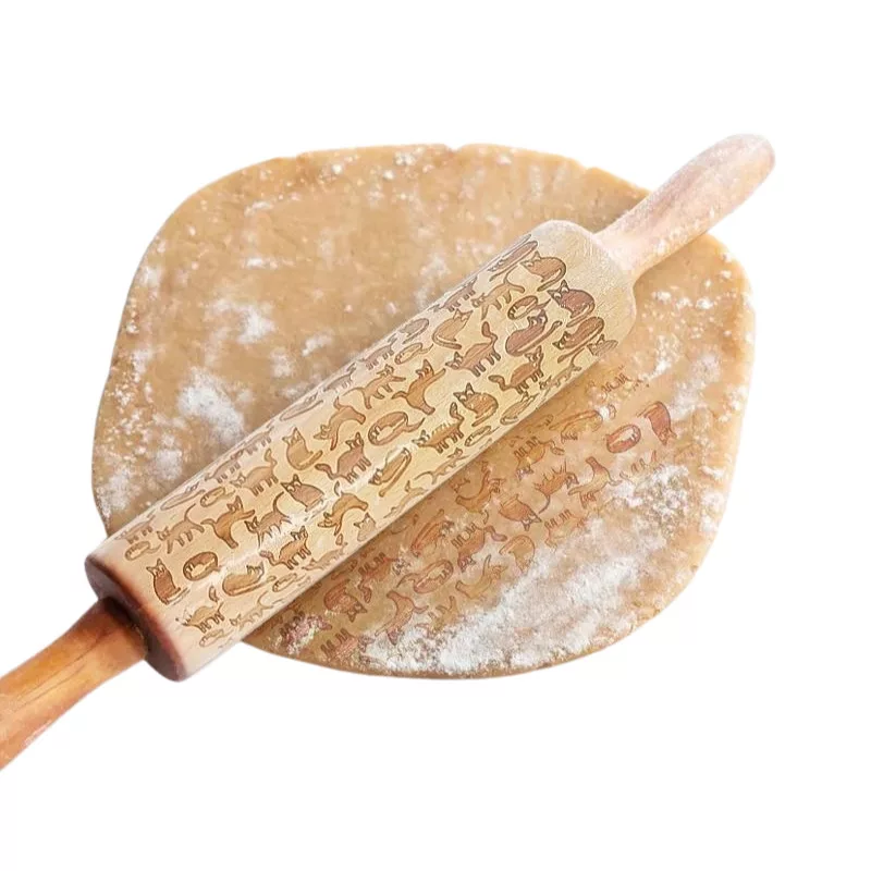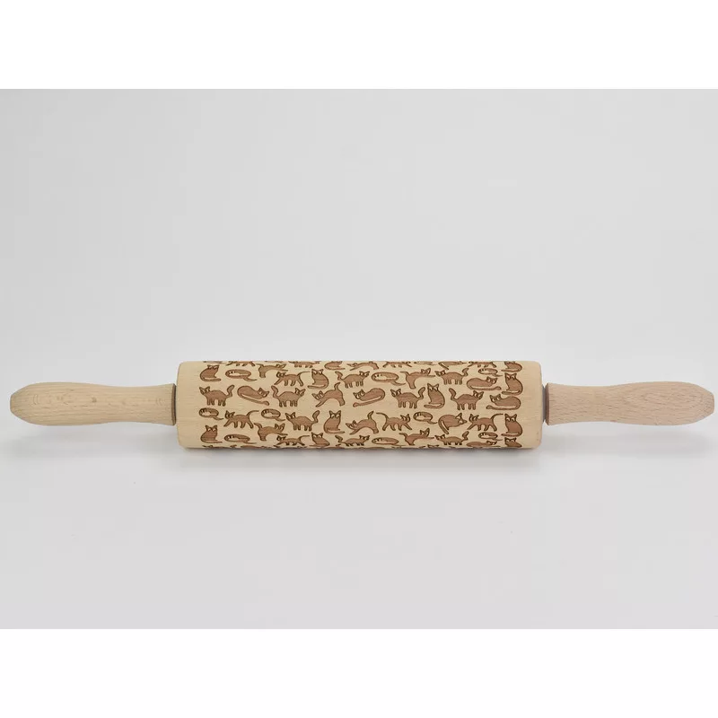 Kekszmintázó sodrófa - Cicás 38cm