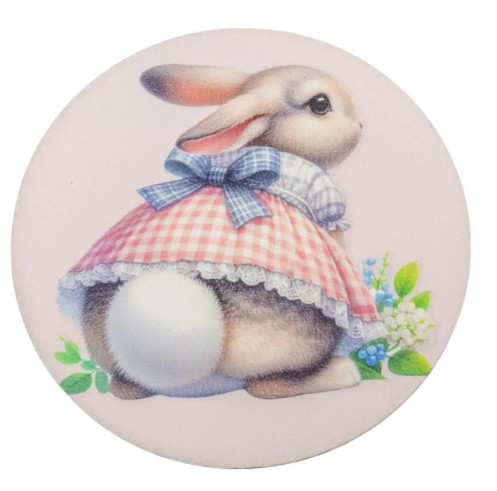 Kerek díszfigura, ruhás húsvéti nyuszi – UV nyomtatott karton, 11,8 cm