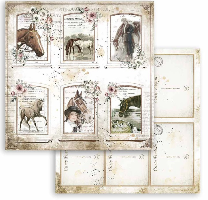 Kétoldalas scrapbook papír – 30,5 x 30,5 cm Vintage lovak és romantikus elegancia