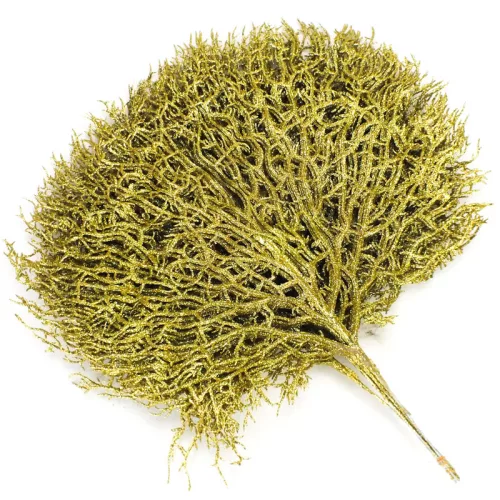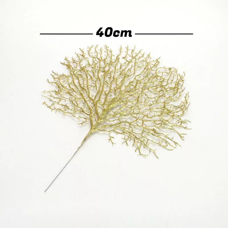 Arany színű korall dekorlevél: otthoni vagy kirakati díszítéshez. Önmagában vagy kiegészítő díszítéshez, készítményekhez egyaránt használható.