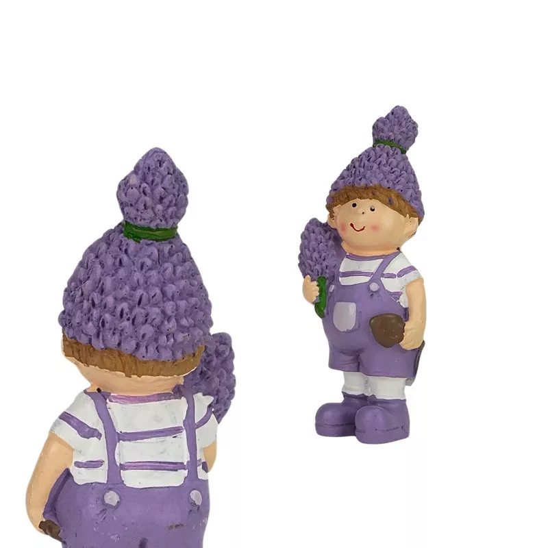 Fedezd fel ezt a bájos levendula figurát, amely a meghitt nyári hangulatot hozza el otthonodba! A varázslatos jelenetben egy csomag levendulát tart a kezében, tökéletesen megidézve a kellemes nyári napokat. Bátran helyezd el az asztalon, polcon vagy akár a kandallópárkányon, hogy hangulatos és meghitt dekorációt varázsolj a lakásodba. Ez a figura nem csak egy díszítőelem, hanem egy történetmesélő, amely vidámságot és melegséget sugároz! A levendula család többi részével még jobban érzi magát!