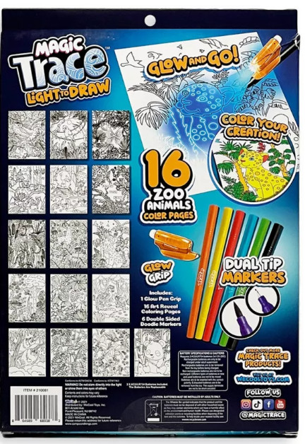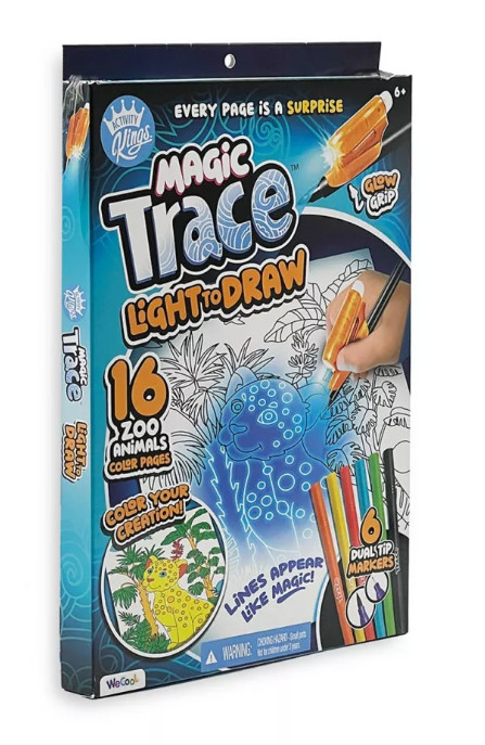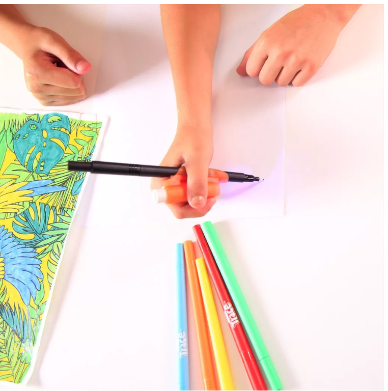 Ragyogó rajzolás, kreatív varázslat vár a Magic Trace kreatív szettekkel! A készletben található lapok látszólag üresek, ám ha a lámpát a filcre helyezed, majd felkapcsolod, titkos vonalak sejlenek fel a papíron a fényben, mintha csak egy bűbájjal hívnád elő a rejtett motívumokat. A fényben látott íveket könnyen átrajzolhatod a filcekkel, azután pedig kedved szerint színezheted az ábrákat.