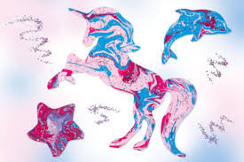 A készletben található utasításokat követve a kis művészek színeket önthetnek és kombinálhatnak, hogy élénk mintákat hozzanak létre dekoratív formákon, például unikornisokon, delfineken és csillagokon. A végeredmény egy egyedi művészi dekoráció, amely tökéletes a gyerekszobába.