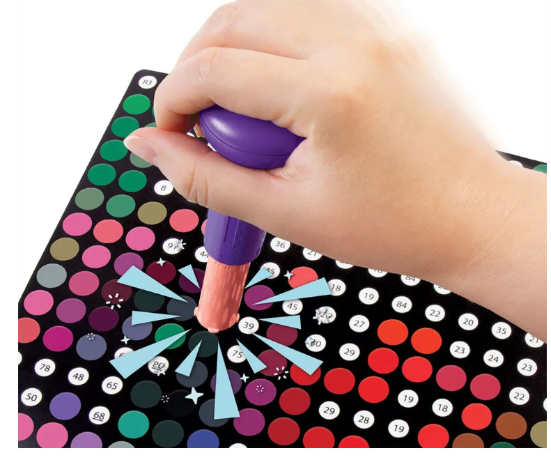 Pontokból képet? Ismerd meg a dot art készítést, és készíts posztert trendi megjelenéssel! Vedd a kezedbe a bélyegző pálcát, nézd meg a következő a papírpötty számát, és keresd meg a helyét a poszteren. Igazítsd a bélyegzőt, majd nyomd a megfelelő helyre. Folytasd az alkotást, és nemsokára egy színes és vidám kép áll össze előtted. Ezzel a szettel egy színpompás sárkányt alkothatsz.