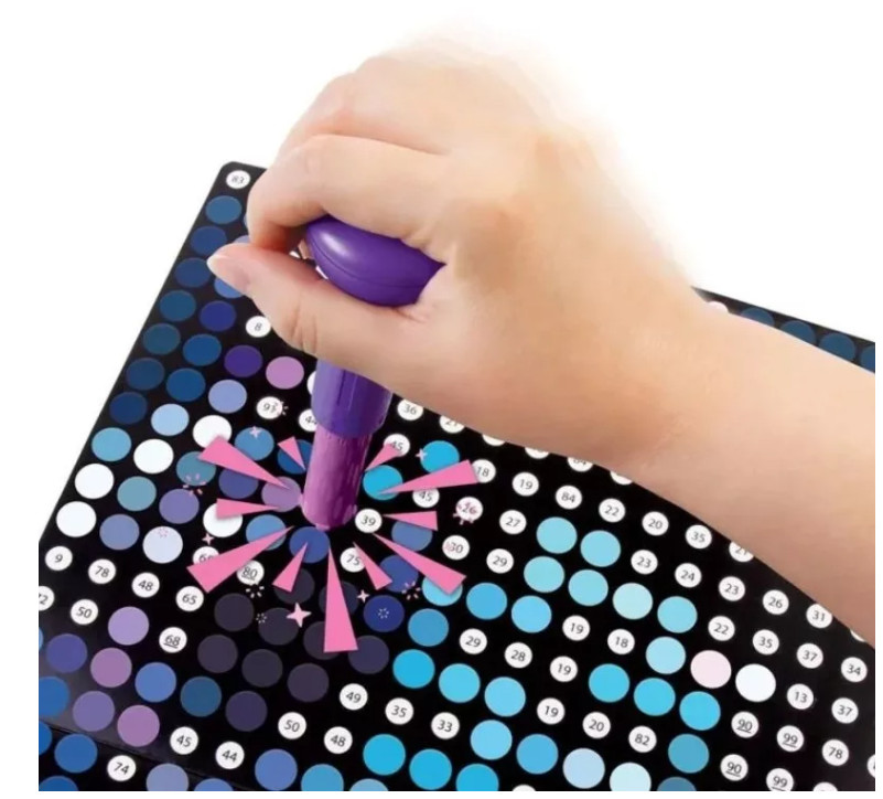 Pontokból képet? Ismerd meg a dot art készítést, és készíts posztert rendi megjelenéssel! Vedd a kezedbe a bélyegző pálcát, nézd meg a következő a papírpötty számát, és keresd meg a helyét a poszteren. Igazítsd a bélyegzőt, majd nyomd a megfelelő helyre. Folytasd az alkotást, és nemsokára egy színes és vidám kép áll össze előtted. Ezzel a szettel egy színpompás pufi gömböcöt alkothatsz.