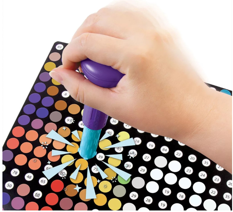 Pontokból képet? Ismerd meg a dot art készítést, és készíts posztert rendi megjelenéssel! Vedd a kezedbe a bélyegző pálcát, nézd meg a következő a papírpötty számát, és keresd meg a helyét a poszteren. Igazítsd a bélyegzőt, majd nyomd a megfelelő helyre. Folytasd az alkotást, és nemsokára egy színes és vidám kép áll össze előtted. Ezzel a szettel egy színpompás unikornist alkothatsz.