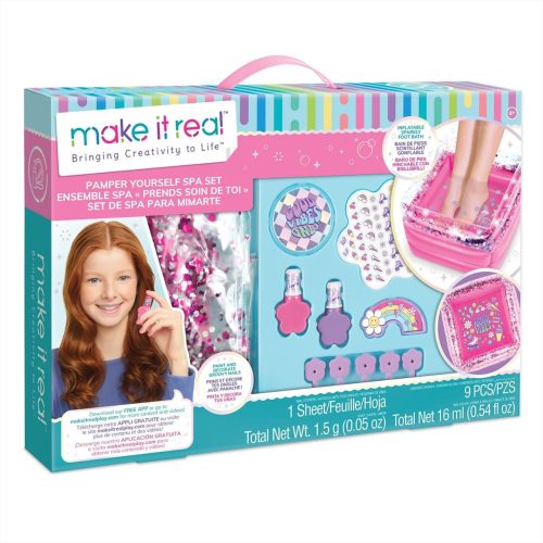 A Make It Real Kényeztesd magad – Spa Szett egy teljes körű, játékos wellness-készlet, amely lehetővé teszi a fiatalok számára, hogy saját otthoni spa-élményt teremtsenek. A szett tartalmaz fürdőbomba formákat, illatosított készítményeket és kiegészítőket a játékos, kreatív kikapcsolódáshoz.