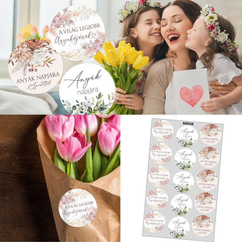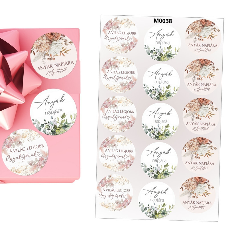 Matrica - Anyák napi kerek matricák - pasztell 15db/lap