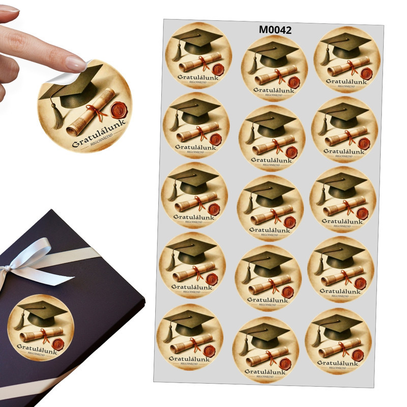 Matrica - Ballagási kerek matrica - Gratulálunk 15db/lap
