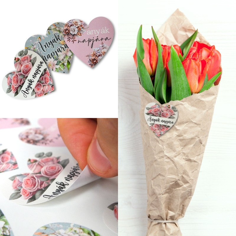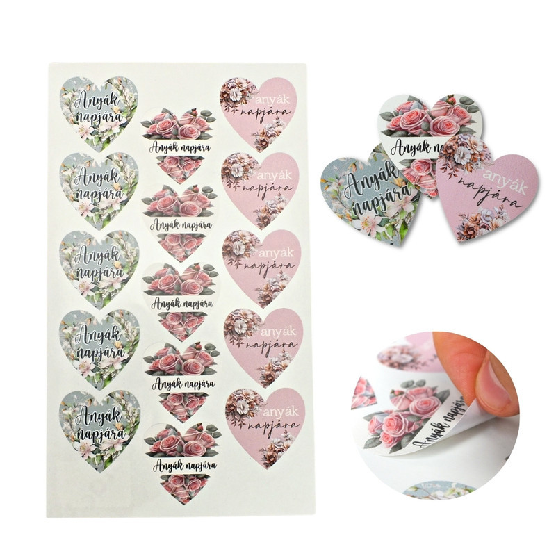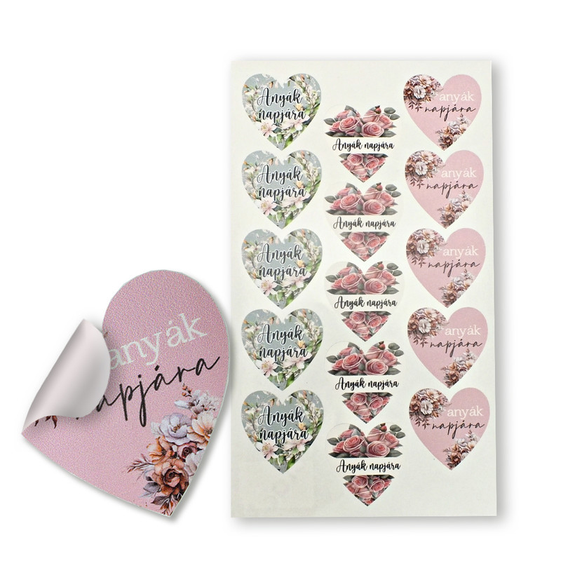 Matrica - anyák napjára szív 3 féle 15db/lap