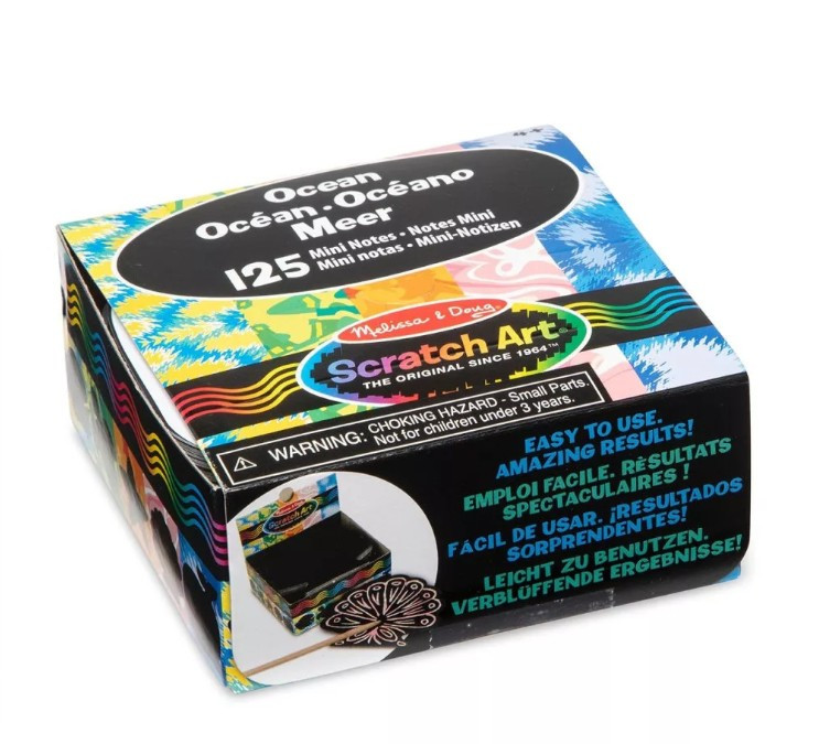 Egyszerűen használható, lenyűgöző látványt és sok-sok meglepetést nyújt minden egyes karcolással ez az Óceános Képkarc Füzet, amivel egyedi módon küldhetsz üzeneteket, készíthetsz mintákat és ajándékokra címkéket. Kapard le a fekete bevonatot, és fedj fel 5 különböző, színes mintát. Minden egyes doboz 125 karclapot (körülbelül 9x9 cm) tartalmaz 5 óceános témájú formában (hal, teknős, tengeri csillag, kagyló és bálna). A négyéves és idősebb gyerekek a fa karcceruza segítségével mintákat, firkákat, szavakat, képeket és egyebeket készíthetnek, hogy valóban egyedi műalkotásokat hozzanak létre. A karclapok és a ceruza egy praktikus kis asztali írószeres dobozban tárolható.