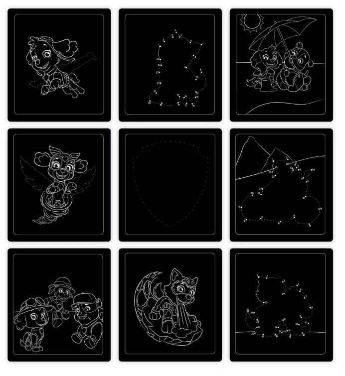 Az ismert Mancs Őrjárat meséből az aranyos kislány kutya karakter Skye, most ebben a szuper képkarc szettben köszön vissza rád. 10 jelente van benne a meséből, ahol Skye éppen egy menő helikopterben ül, vagy a barátaival mókázik. A játék fejleszti a kézügyességet és a kreativitást.