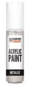 Ez az ezüst metál akrilfesték elegáns, modern és rendkívül sokoldalú megjelenést kölcsönöz, tökéletes fényes dekorációkhoz és prémium kiegészítőkhöz. Az intenzív ezüst árnyalat a metálhatást finom csillogással ötvözi, így bármilyen tárgyat látványos díszítőelemmé varázsol.