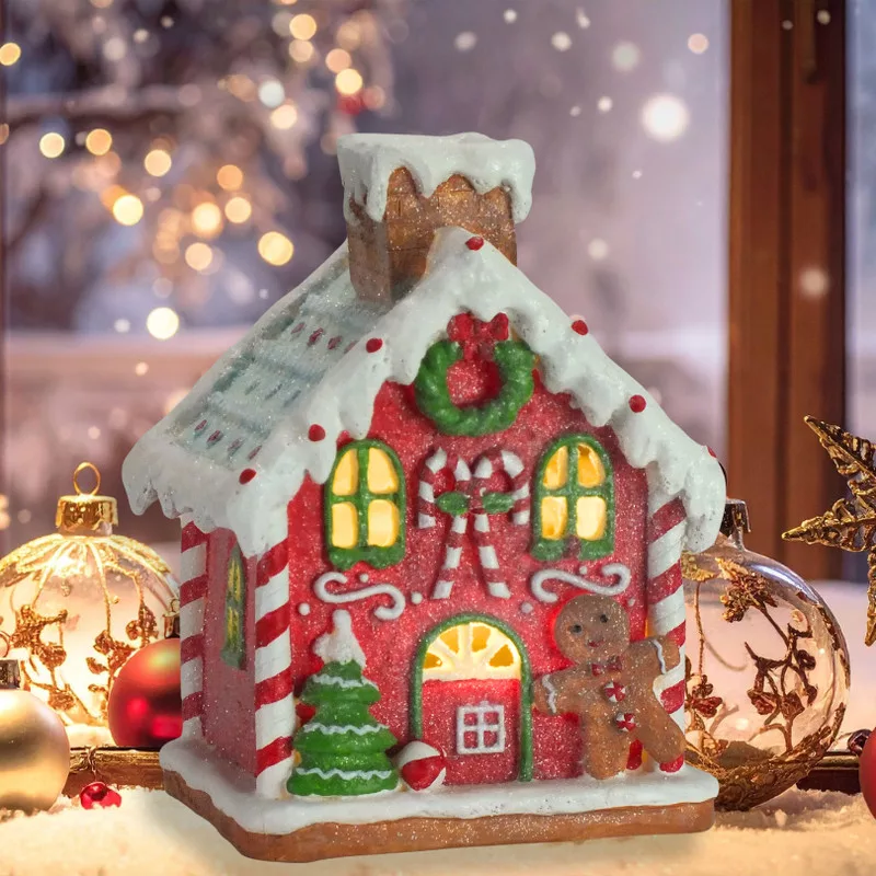 Varázsolj ünnepi hangulatot otthonodba ezzel a mézeskalács házikóval! A kéményes dekoráció és a meleg fények életre keltik a karácsonyi hangulatot, miközben a házikó zenélő funkciója még különlegesebbé teszi a díszt. Ideális asztali vagy polcos dekoráció, amely minden beltéri teret ünnepivé varázsol.