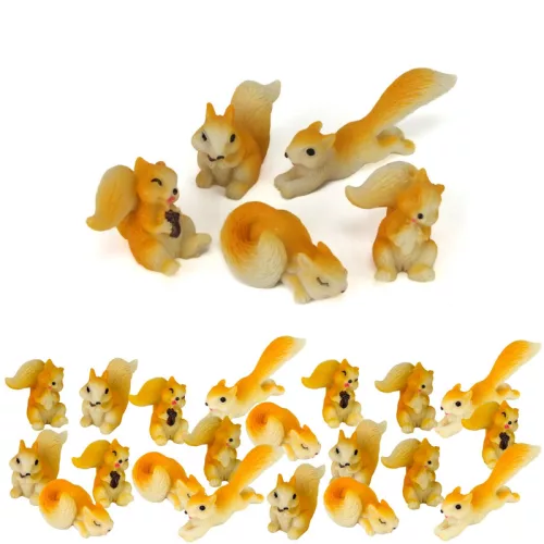 6x5db Mini polirezin mókusok a tavasztól-őszig tartó szezon dekorációihoz.