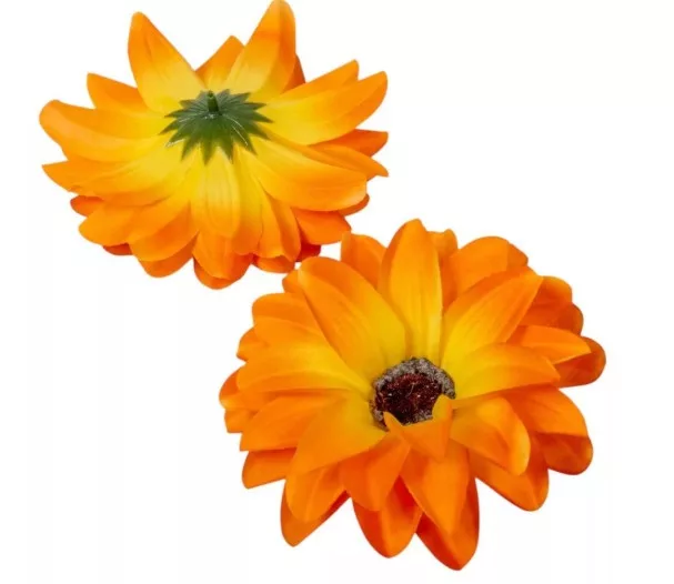 A 12 cm átmérőjű narancssárga szatén dáliafej egy erőteljes, dekoratív művirág, amely merész projektekhez, élénk dekorációkhoz és személyiséggel bíró, kézzel készített kompozíciókhoz készült. A narancssárga szín energiát, melegséget és dinamizmust visz bármilyen kompozícióba, ideális őszi dekorációkhoz, tematikus rendezvényekhez, kirakatokhoz és modern belsőépítészethez.