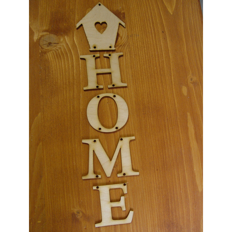4db betű és 1db házikó forma összefűzhető, felakasztható formában. Fűzd össze spárgával, raffiával , dekor dróttal vagy szalaggal. Nincs összekötve.