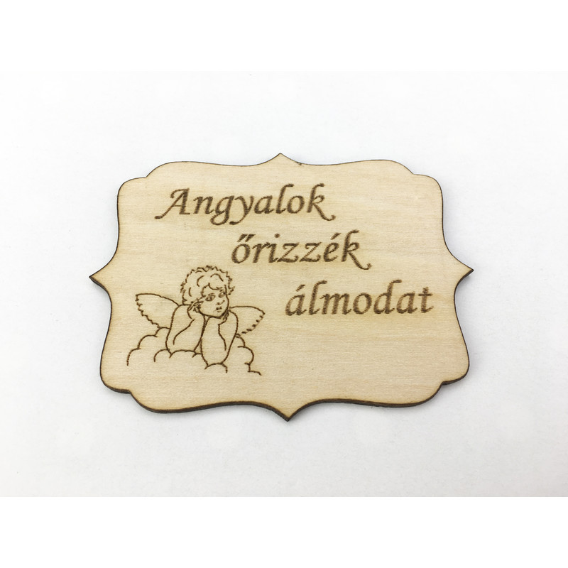 Natúr fa - "Angyalok őrizzék álmodat" tábla 8x6cm