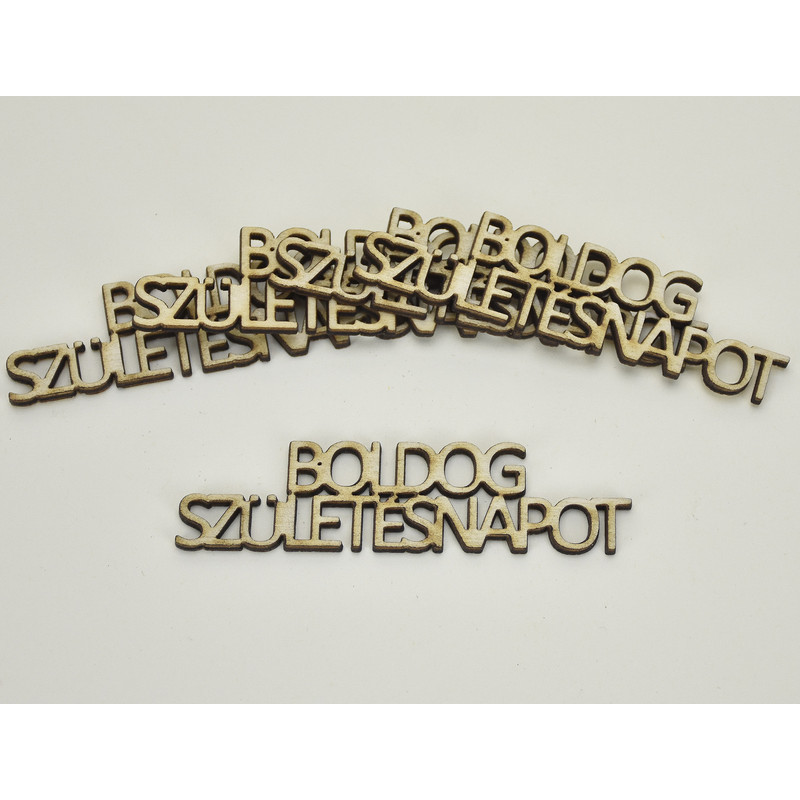 Natúr fa - " BOLDOG SZÜLETÉSNAPOT " felirat 2,4x9cm 5db/csomag
