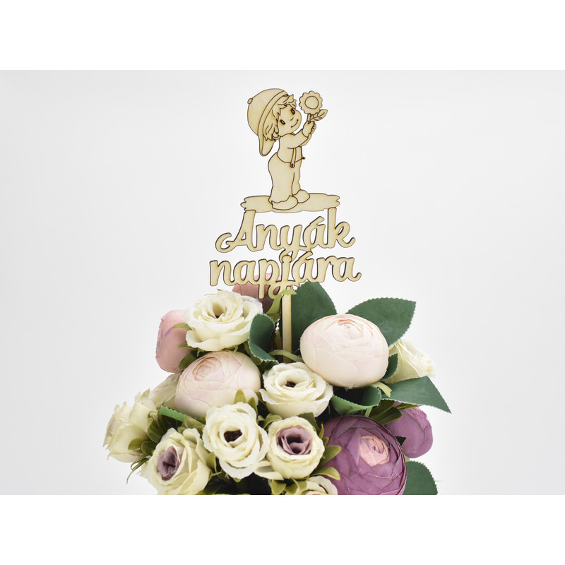 Natúr fa - Beszúrós felirat "Anyák napjára" kisfiús