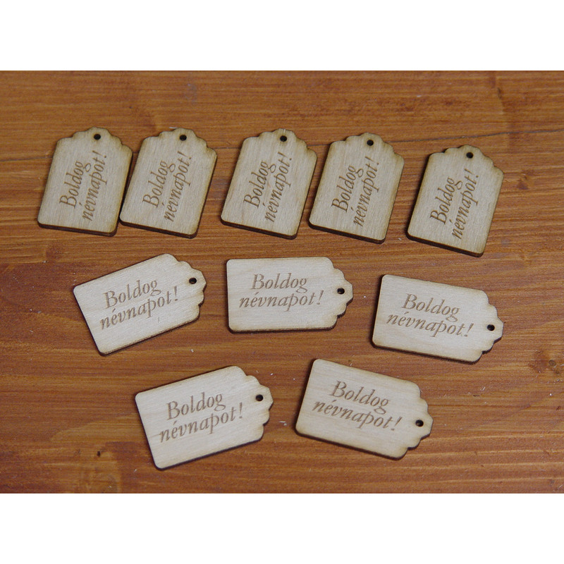 Natúr fa - "Boldog Névnapot" gravírozott scrapbook táblák 3x4,5cm 10db/csomag