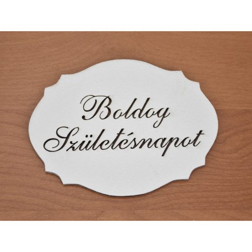 Natúr fa - "Boldog Születés napot" kiesős tábla fehér 7,5x10cm