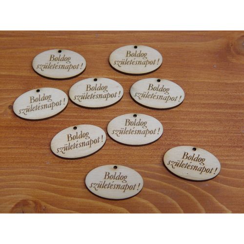 Natúr fa - "Boldog születésnapot" gravírozott ovál táblák 10db/csomag