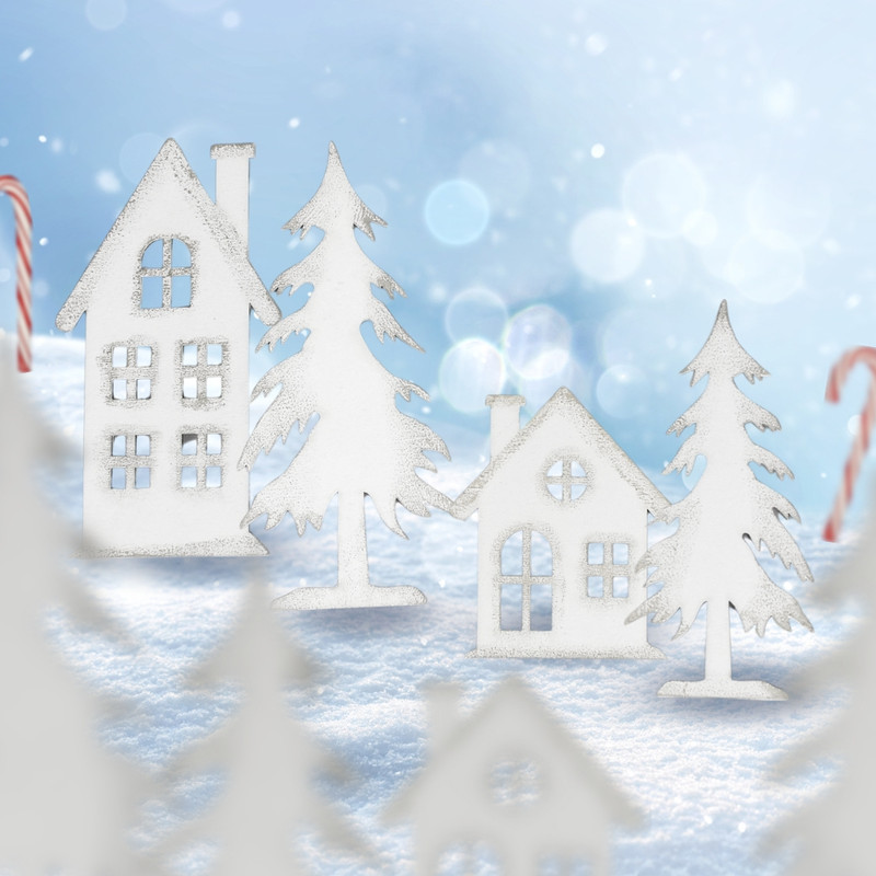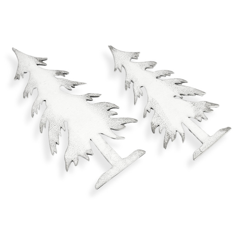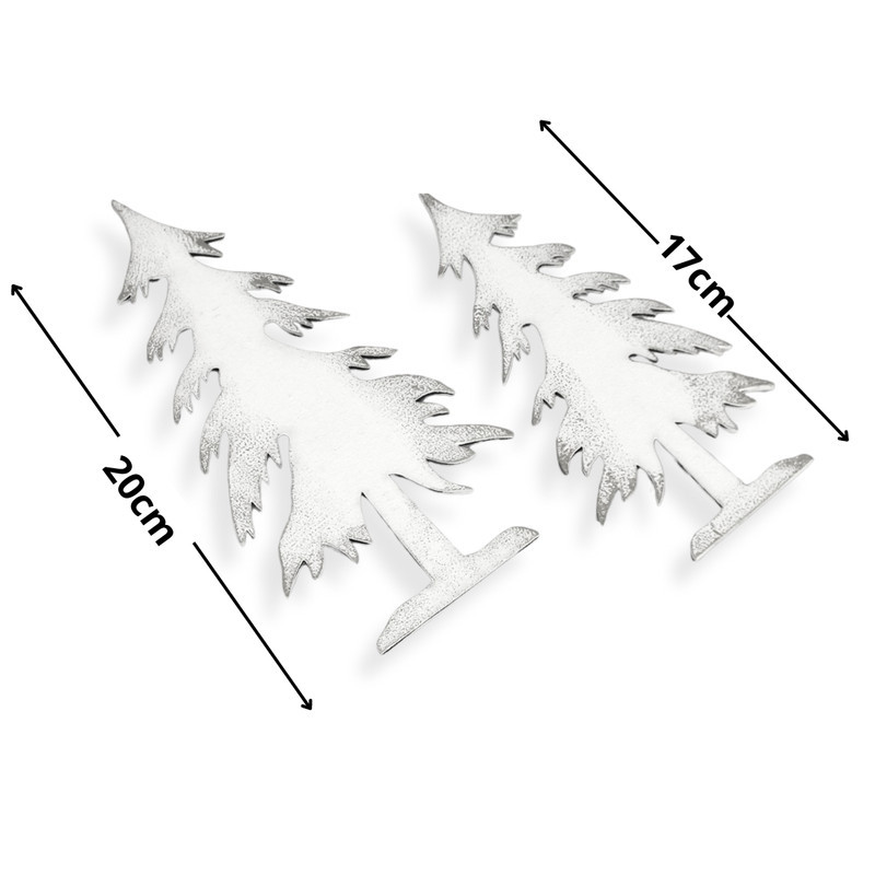 Natúr fából lézervágott fenyő formák, fehérre festve és ezüst színnel díszítve. Jól mutat egyedi karácsonyi készítményekben, otthoni dekorációkban és üzletek bemutatóiban, kirakatokban.