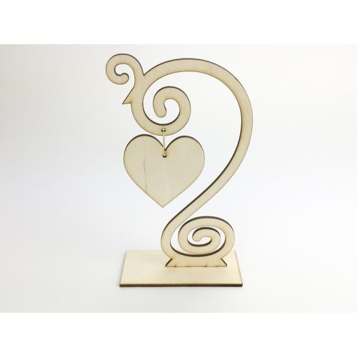 Natúr fa - Díszes szívtartó talpas 17cm