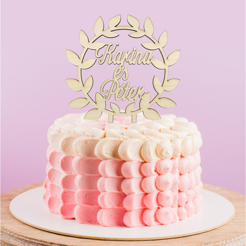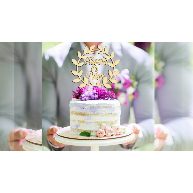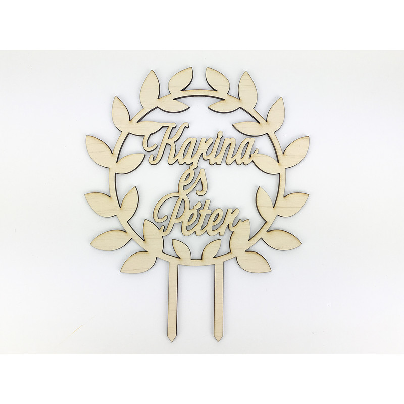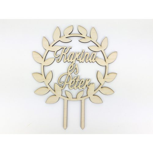Esküvői dekorációs kellék. Festhető tortadísz egyedi felirattal.Kb. 6 karakterig esztétikus a szöveg elhelyezkedése.
