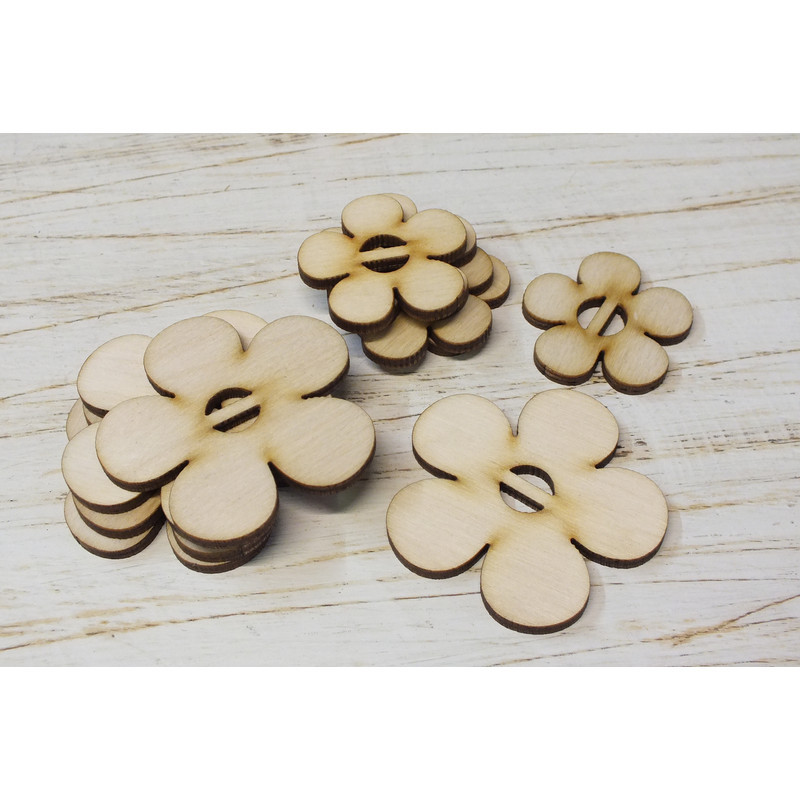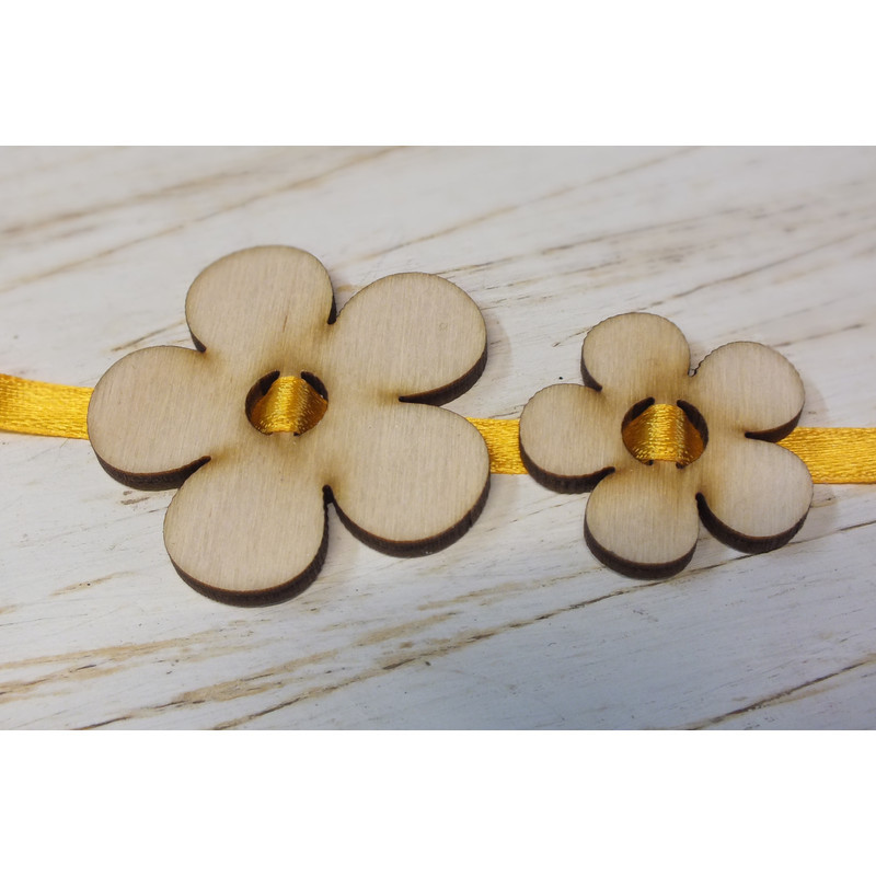 Szalagra fűzhető virágok. A csomag tartalma 5db 3,5m átmérőjű és 5db 5cm átmérőjű fa virág Ajánljuk kreatív alkotásokhoz, virágcsokrokhoz és esküvői dekorációhoz egyaránt.