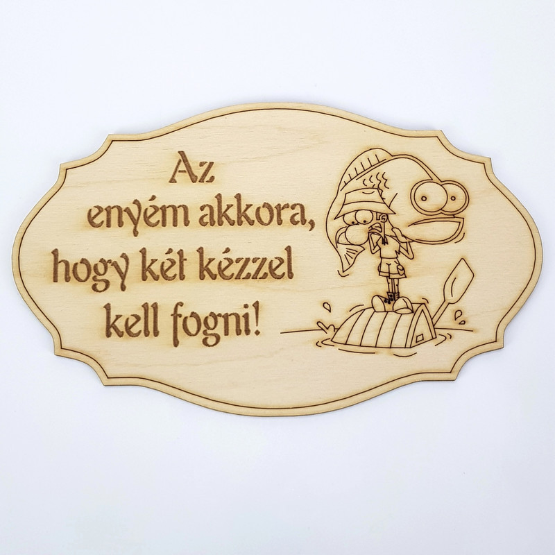 Natúr fa - Feliratos horgász tábla "Az enyém akkora,.." 20cm*12,5cm