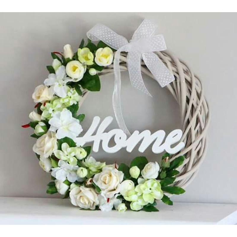 Natúr fa - "Home" írott felirat koszorúra 6,5x20cm