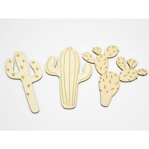 3 különböző méretű egyedi kaktusz dekorációs kellék.