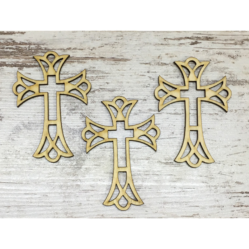 Natúr fa - Kereszt díszes 10cm 3db/csomag