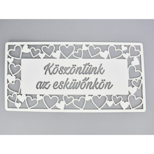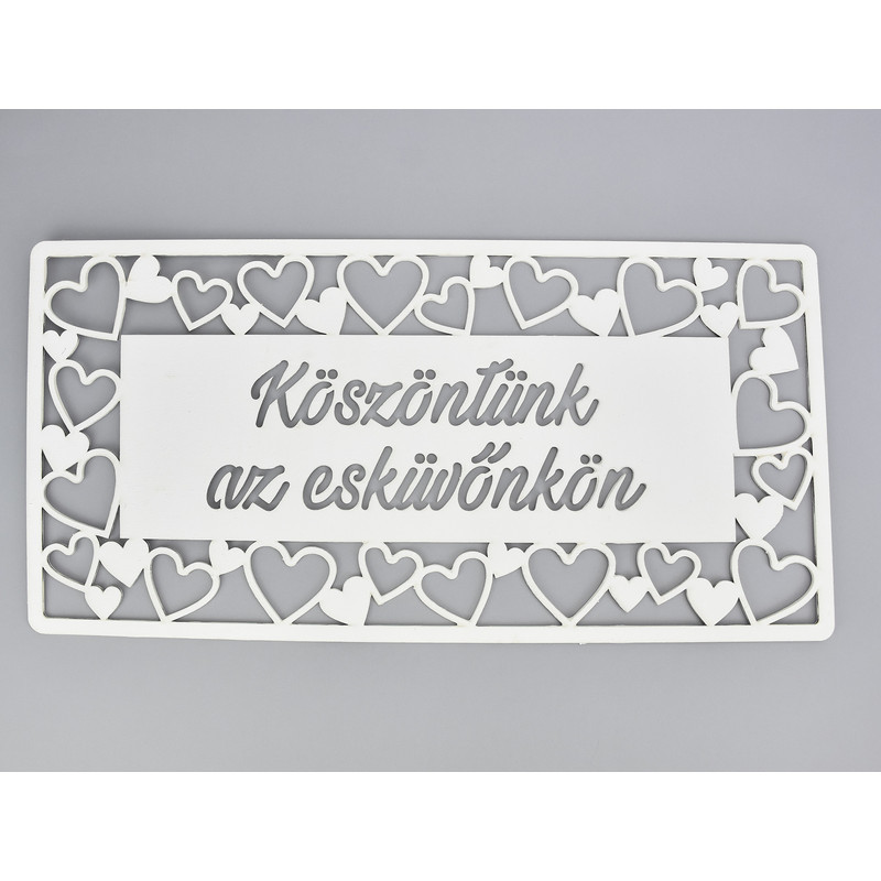 Natúr fa - "Köszöntünk az esküvönkön" tábla fehér 49,5cm