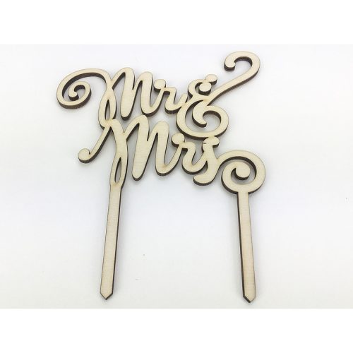 Natúr fa - "MR & MRS" tortadísz beszúrós felirat 12x15cm