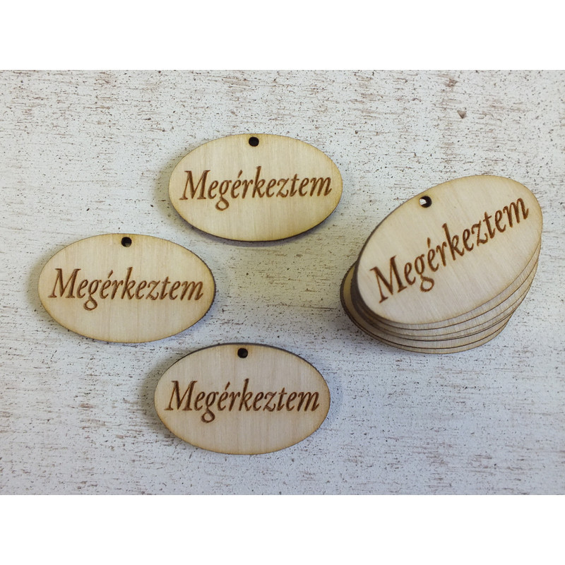 Natúr fa - "Megérkeztem" gravírozott ovál tábla 10db/csomag