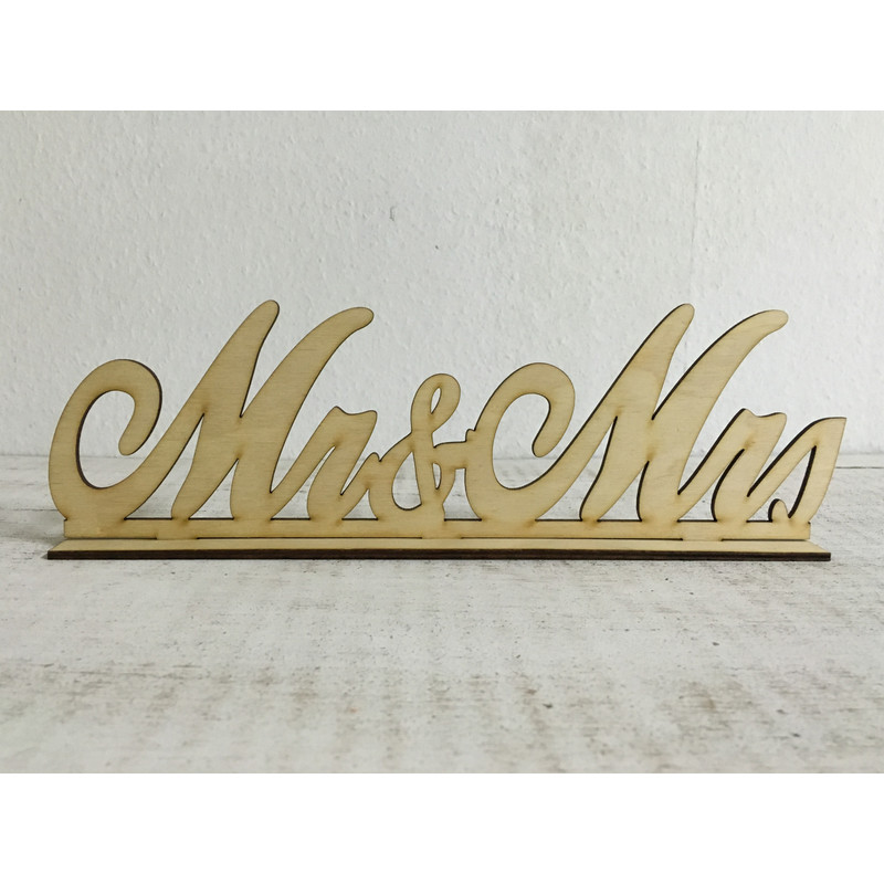 Natúr fa - "Mr & Mrs" írott felirat talppal 30cm