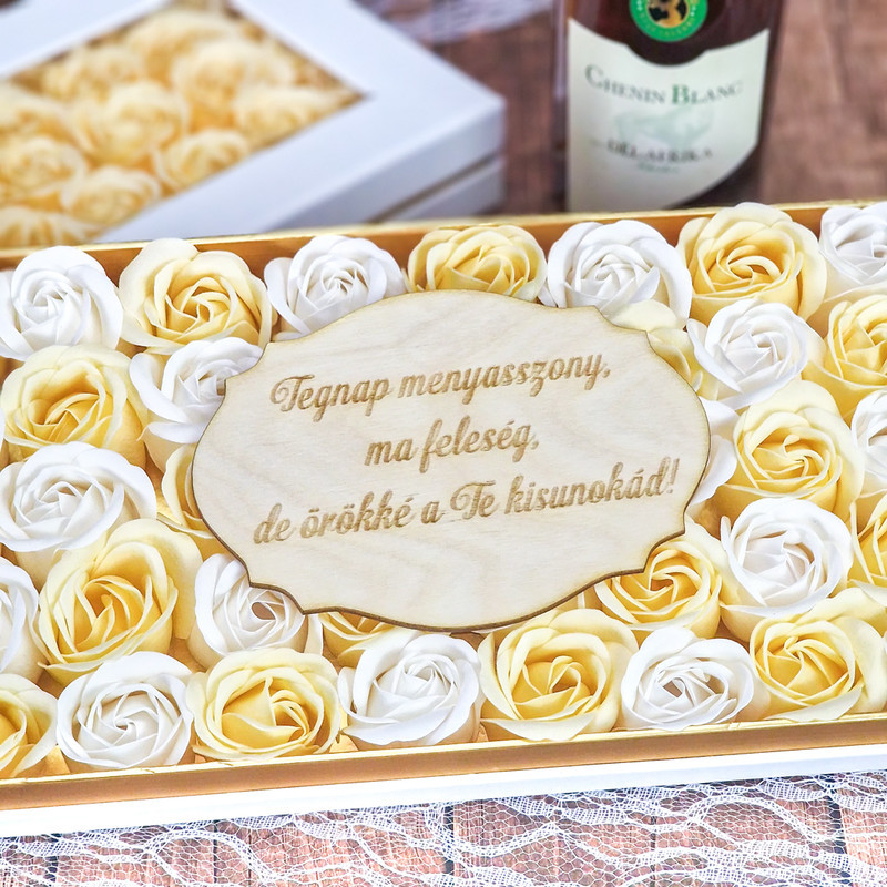 Esküvői feliratos tábla, nagyszülőköszöntő ajándékokhoz.