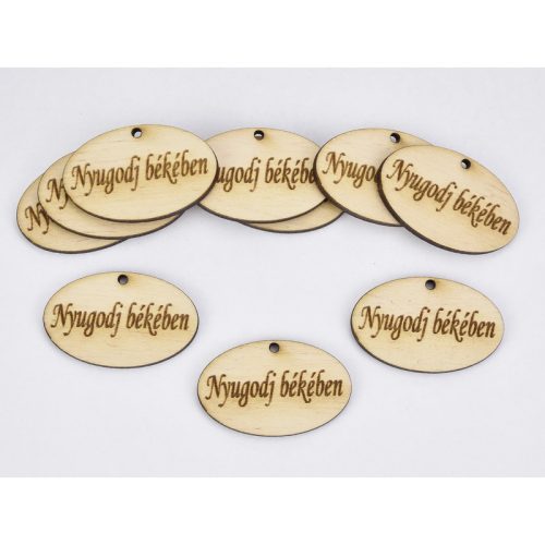 Natúr fa -"Nyugodj békében!" ovál gravírozott tábla 2,5x4cm 10db/csomag