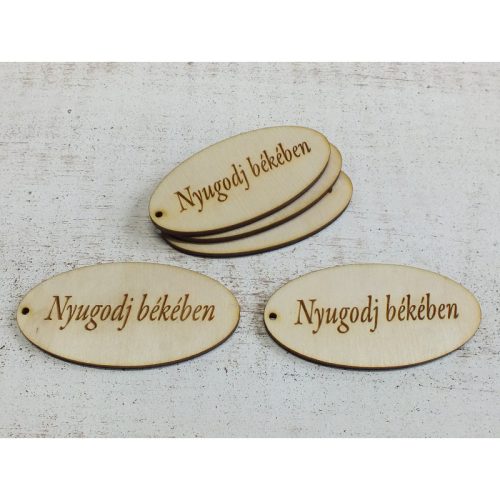 Natúr fa - "Nyugodj békében" ovál tábla 4x8cm 5db/csomag