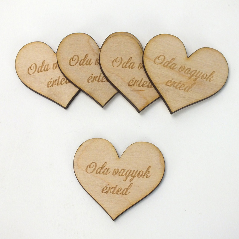 Natúr fa - " Oda vagyok érted" gravírozott szív 4x4,5cm 5db/csomag