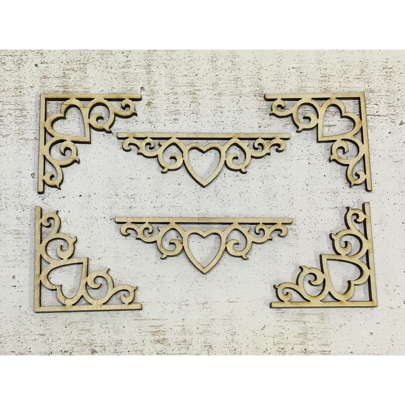 Natúr fa - Sarokdísz + díszítőív szíves 6db/csomag