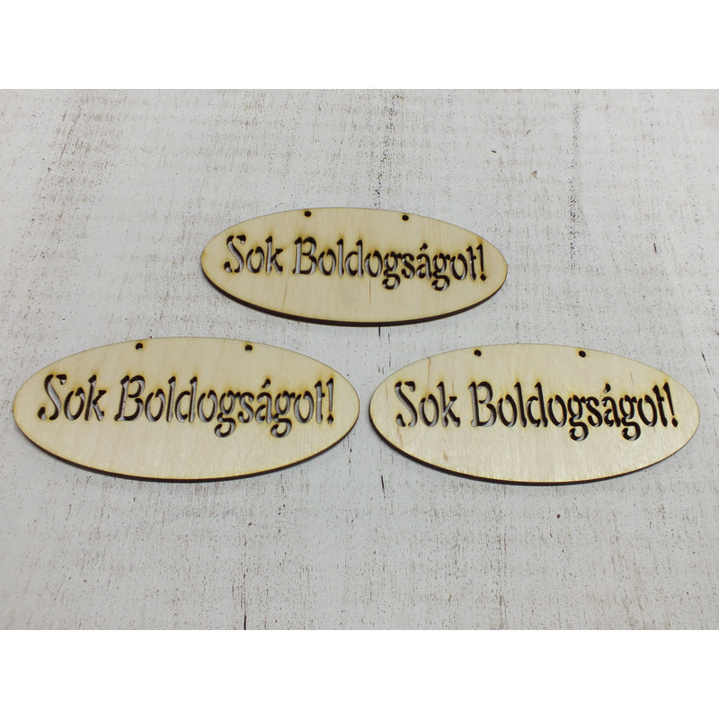 Natúr fa - "Sok Boldogságot" áttört ovál tábla 6x14cm 3db/csomag