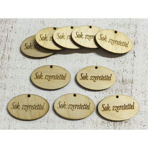 Natúr fa - "Sok szeretettel" ovál táblák 10db/csomag