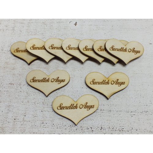 Natúr fa - "Szeretlek Anya" gravírozott szív 10db/csomag