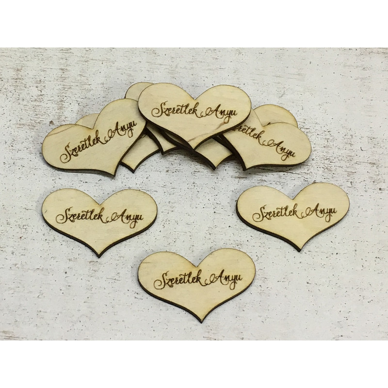 Natúr fa - "Szeretlek Anyu" gravírozott szív 10db/csomag