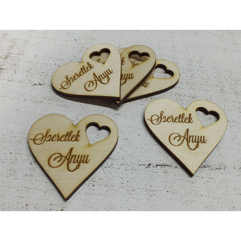 Natúr fa - "Szeretlek Anyu"gravirozott szív 5db/csomag