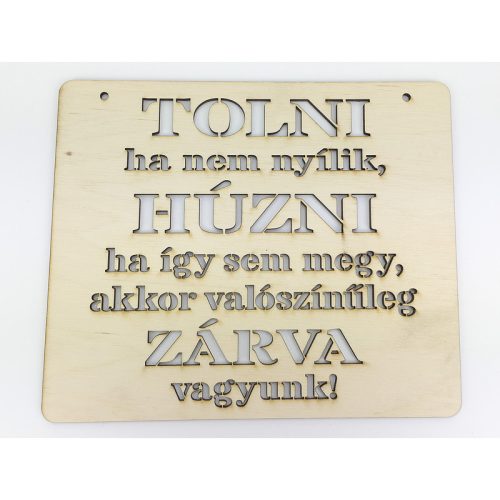 Natúr fa - "TOLNI ha nem nyílik HÚZNI ha..." tábla